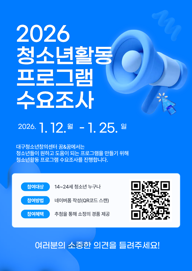 대구청소년창의센터꿈&꿈 청소년활동 프로그램 수요조사