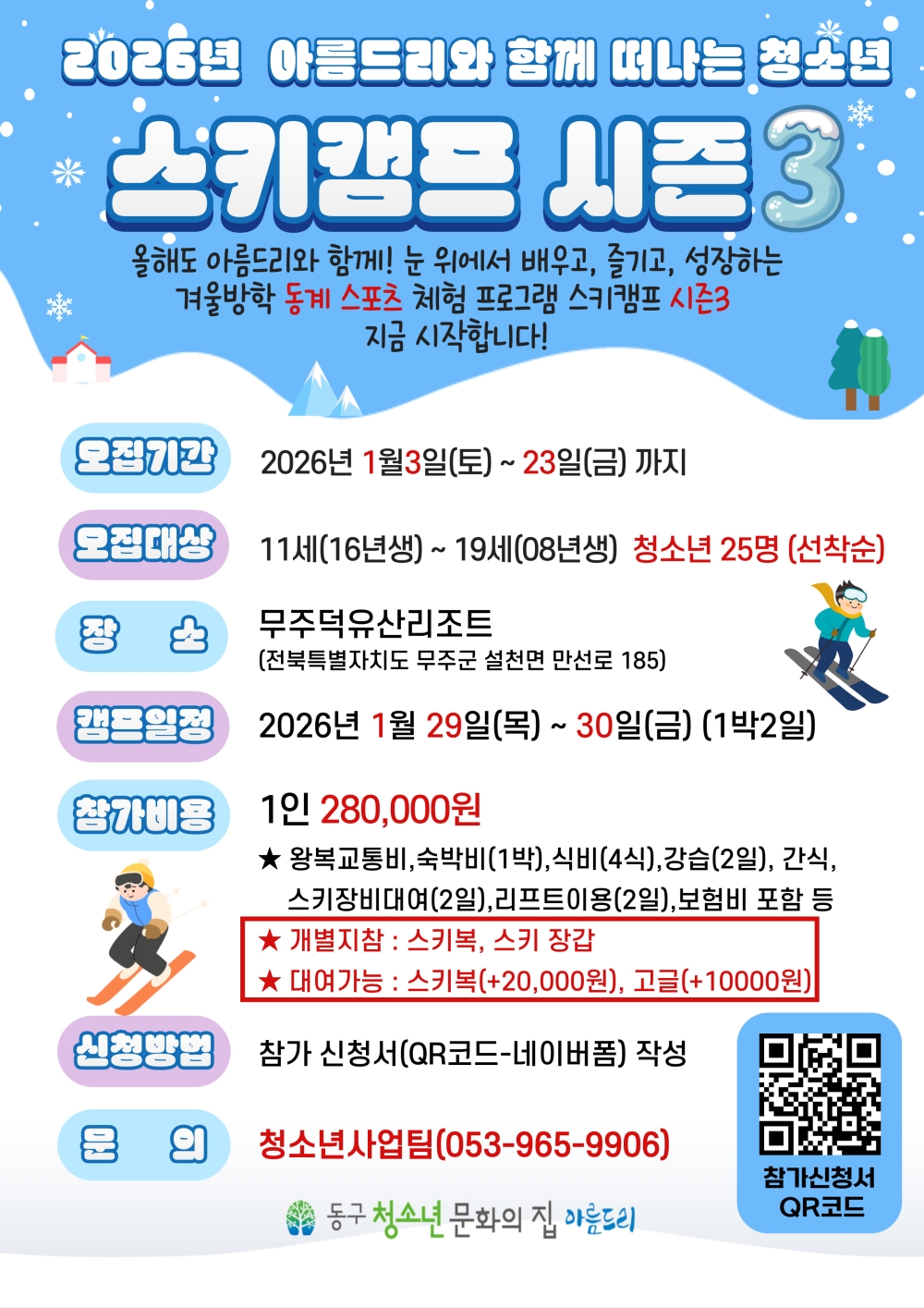 [아름드리] 2026 동계스포츠 스키캠프 시즌3 참가자 모집! 🏂