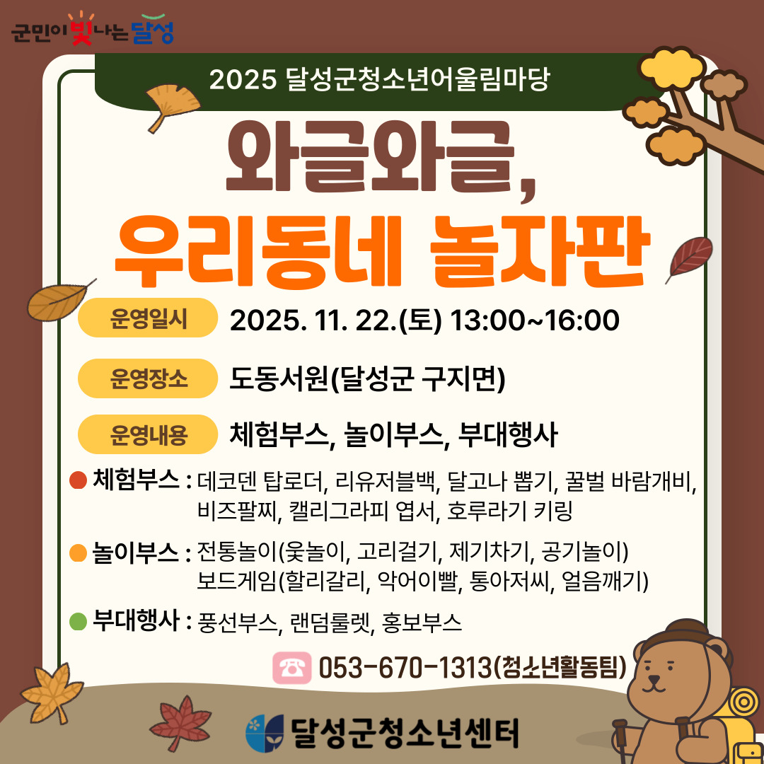 2025년 달서구청소년문화의집 청소년 동아리 신규 모집