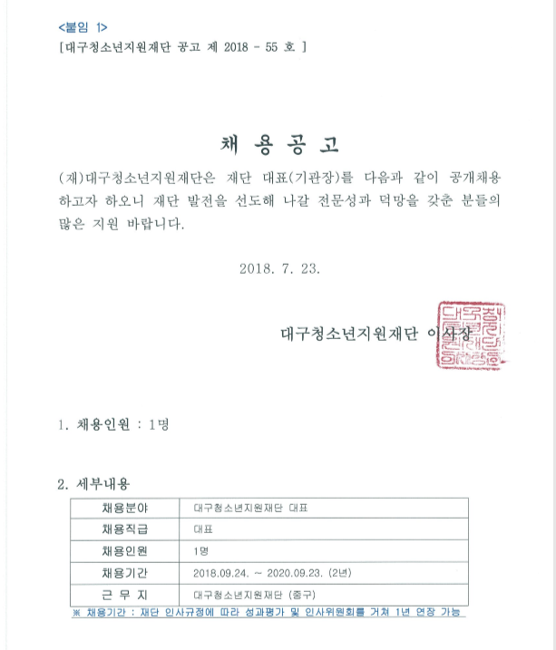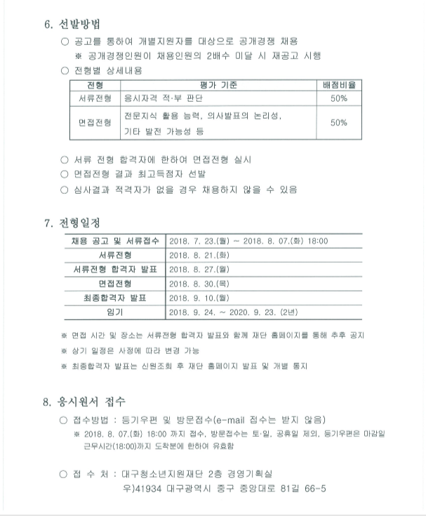 [발표] 대구청소년지원재단 직원(상담복지센터 팀원) 채용 서류전형 결과발표