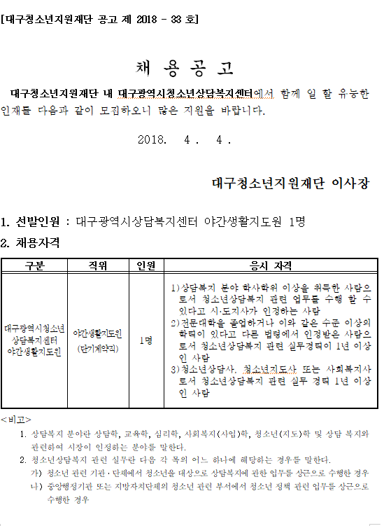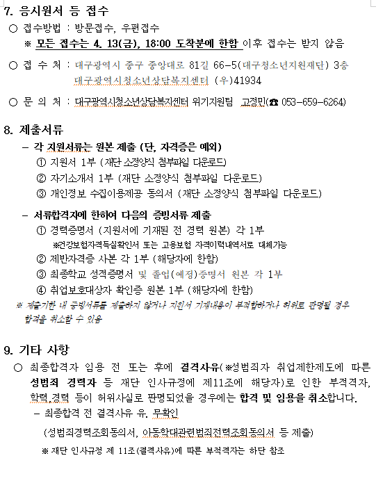 [발표]일시보호시설 꿈바라기터 야간생활지도원 채용 결과