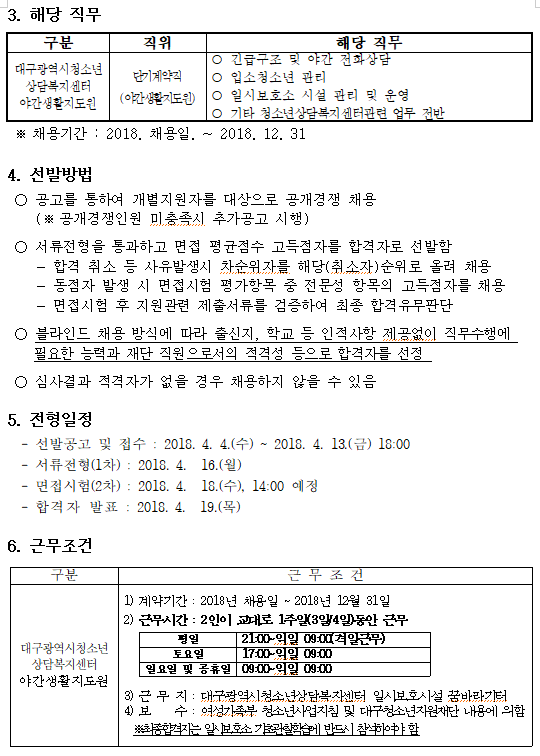 일시보호시설 꿈바라기터 야간생활지도원 채용 재공고