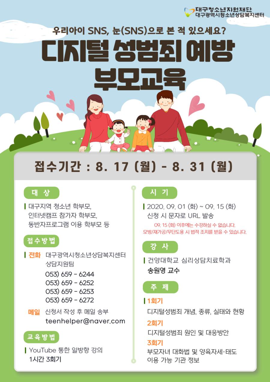 [모집]대구광역시청소년상담복지센터 디지털성범죄예방 부모교육 신청자 모집