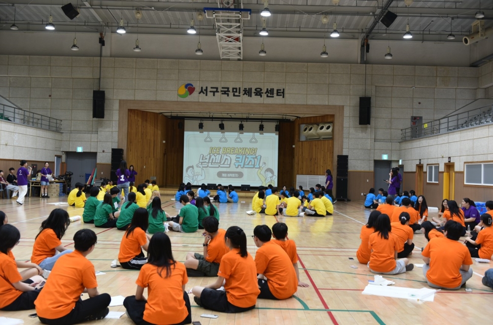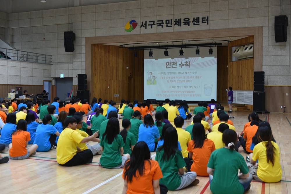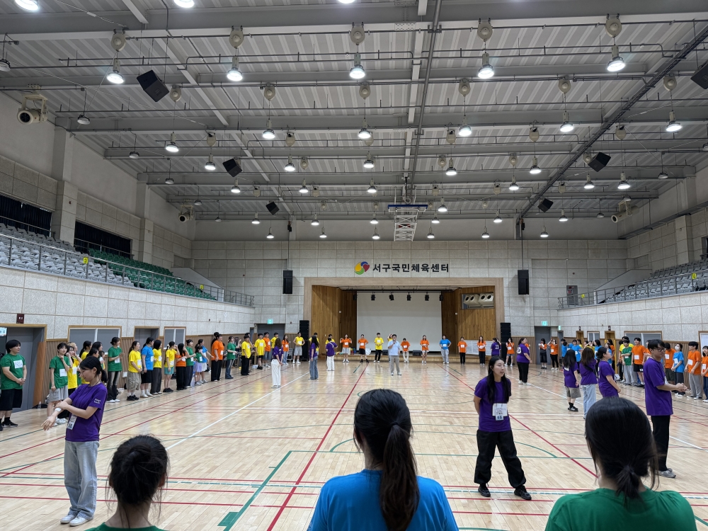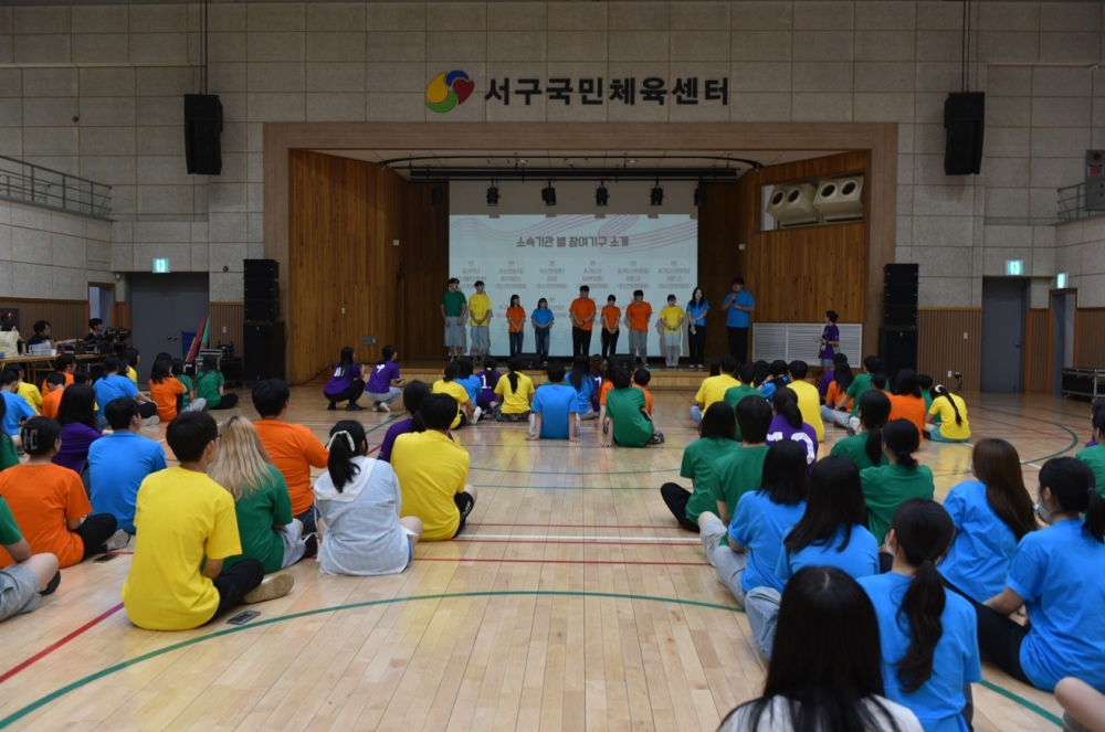 🕘 오전, 설렘 가득한 시작아침 9시부터 각 기관 지도자 선생님들이 모여 티셔츠 배부와 팀별 업무 분장을 진행하고, 청소년들은 하나둘씩 체육관에 도착해 자신만의 팀복으로 갈아입었습니다. 10시 30분에는 참여기구 인사 시간이 마련되어, 무대 위에 각 기관이 올라와 자신들을 소개하고 오늘의 각오를 다짐하며 서로를 격려하는 따뜻한 순간이 이어졌습니다.