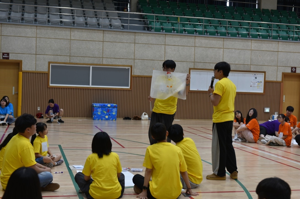 (달서구청소년문화의집 청소년운영위원회) 🧭 본격적인 팀 결성! ‘오리엔테이션’ 시간오전 10시 50분부터는 참여올림픽의 핵심이자 첫걸음인 팀별 오리엔테이션이 진행되었습니다. 자신들의 팀명, 구호, 깃발을 함께 만들며 팀워크를 다졌습니다. 티셔츠에 자신의 이름을 적은 시트지를 붙이고, 조별로 깃발을 꾸미며 서로에 대해 알아가는 시간도 가졌습니다. 이 활동은 자연스럽게 청소년 간의 친밀감과 협업의 경험을 끌어올려주었죠!