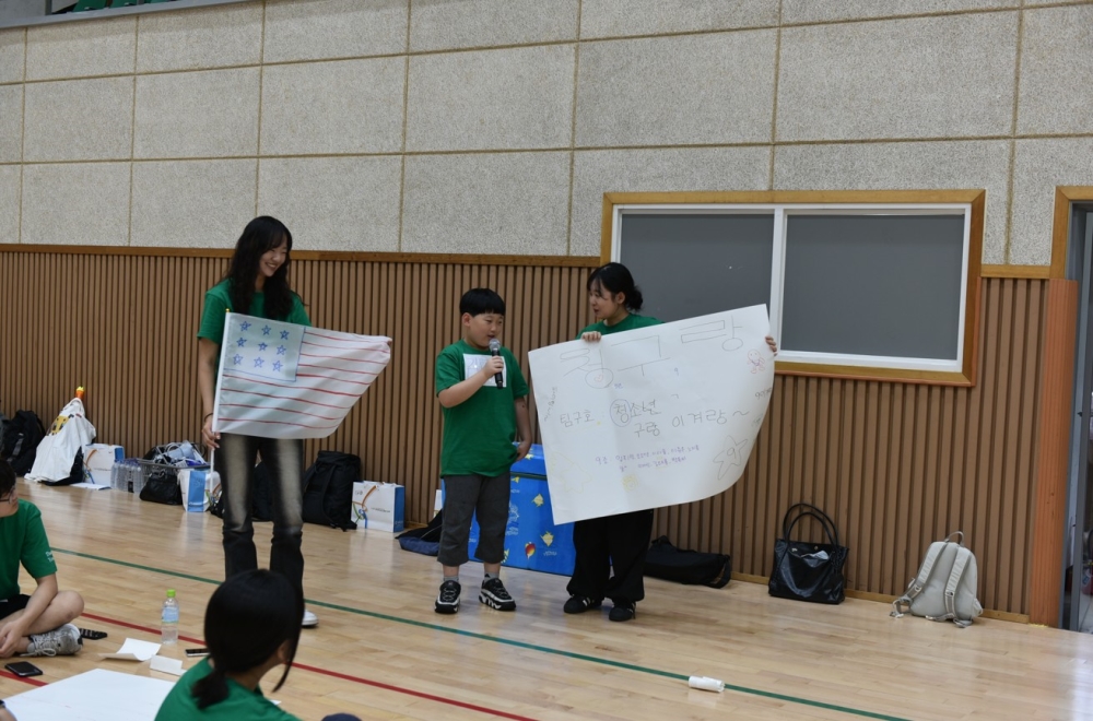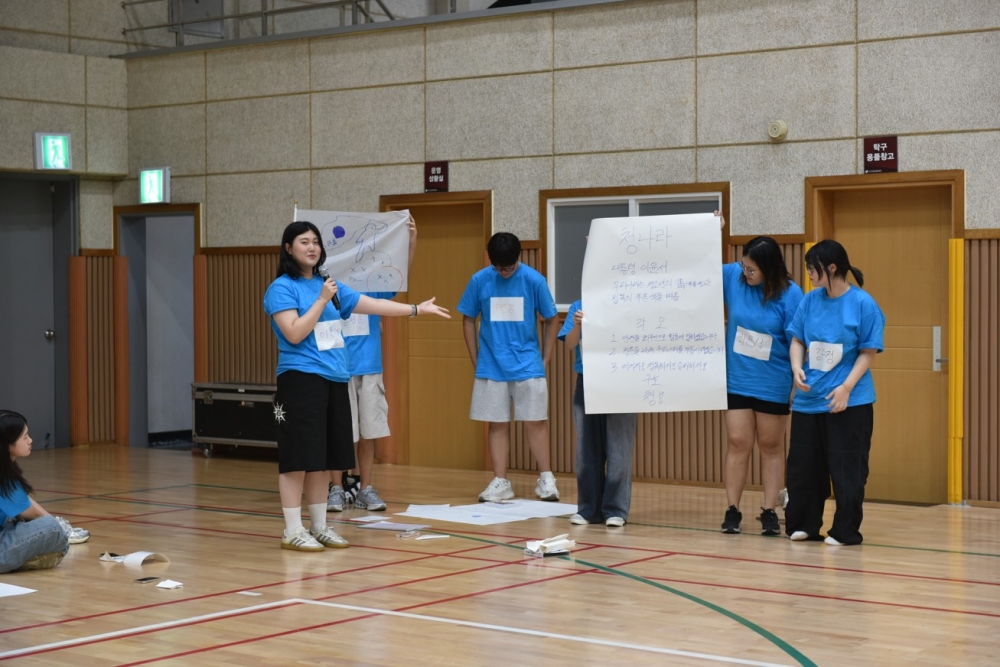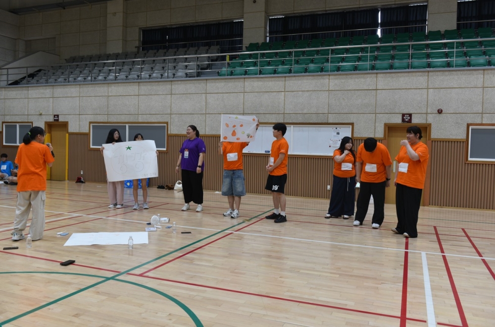 🧠 ‘도전 골든벨’! 청소년활동 지식 뽐내기오전 마지막 프로그램은 두뇌를 깨우는 **‘참여기구 도전 골든벨’**이었습니다. 청소년수련시설 로고 맞히기, 넌센스 퀴즈까지 다채로운 문제들이 출제되었고, 각 팀은 스케치북에 정답을 적으며 협력과 집중력을 발휘했어요. 청소년참여위원회와 운영위원회의 역할과 가치에 대한 이해도 함께 높아졌습니다.
