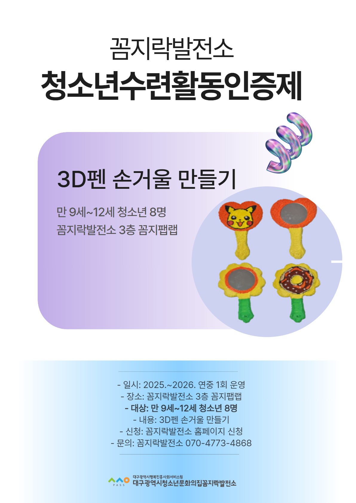 2025년도 대구광역시청소년문화의집 청소년 신규 동아리 모집